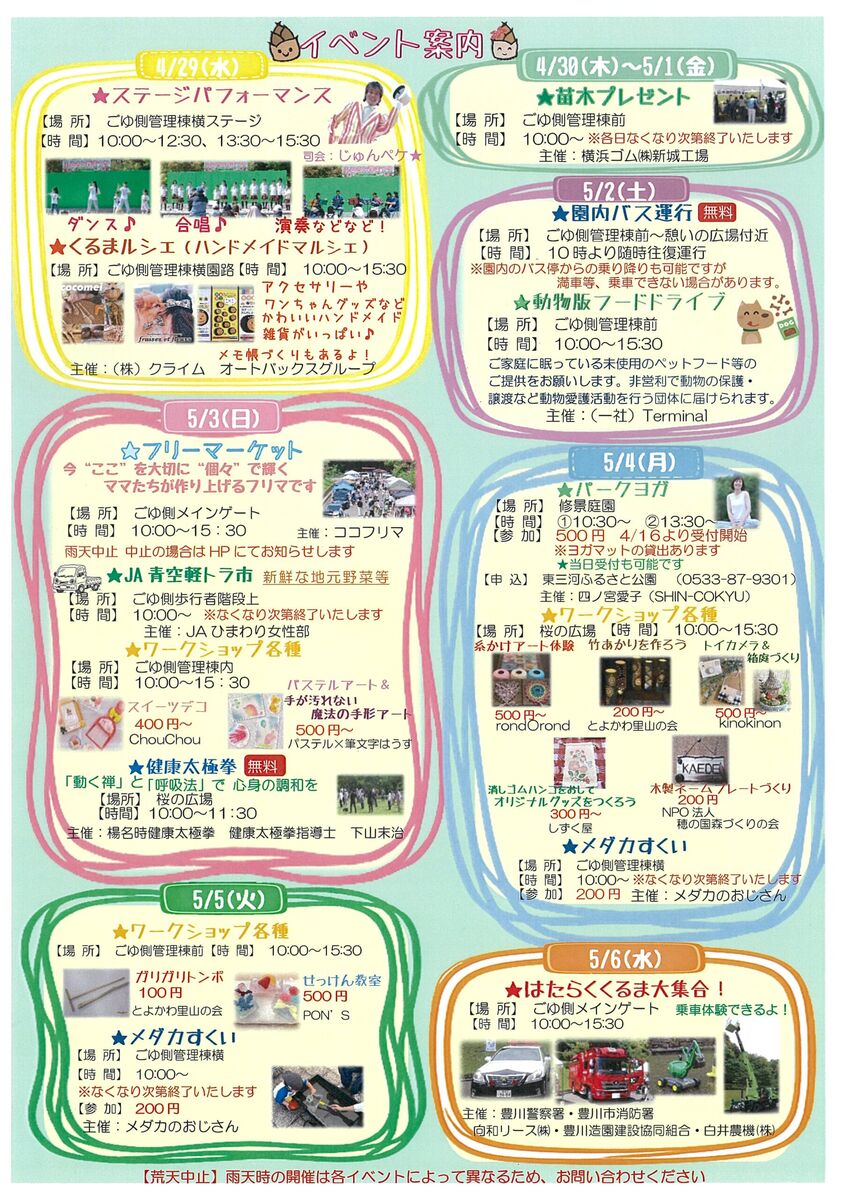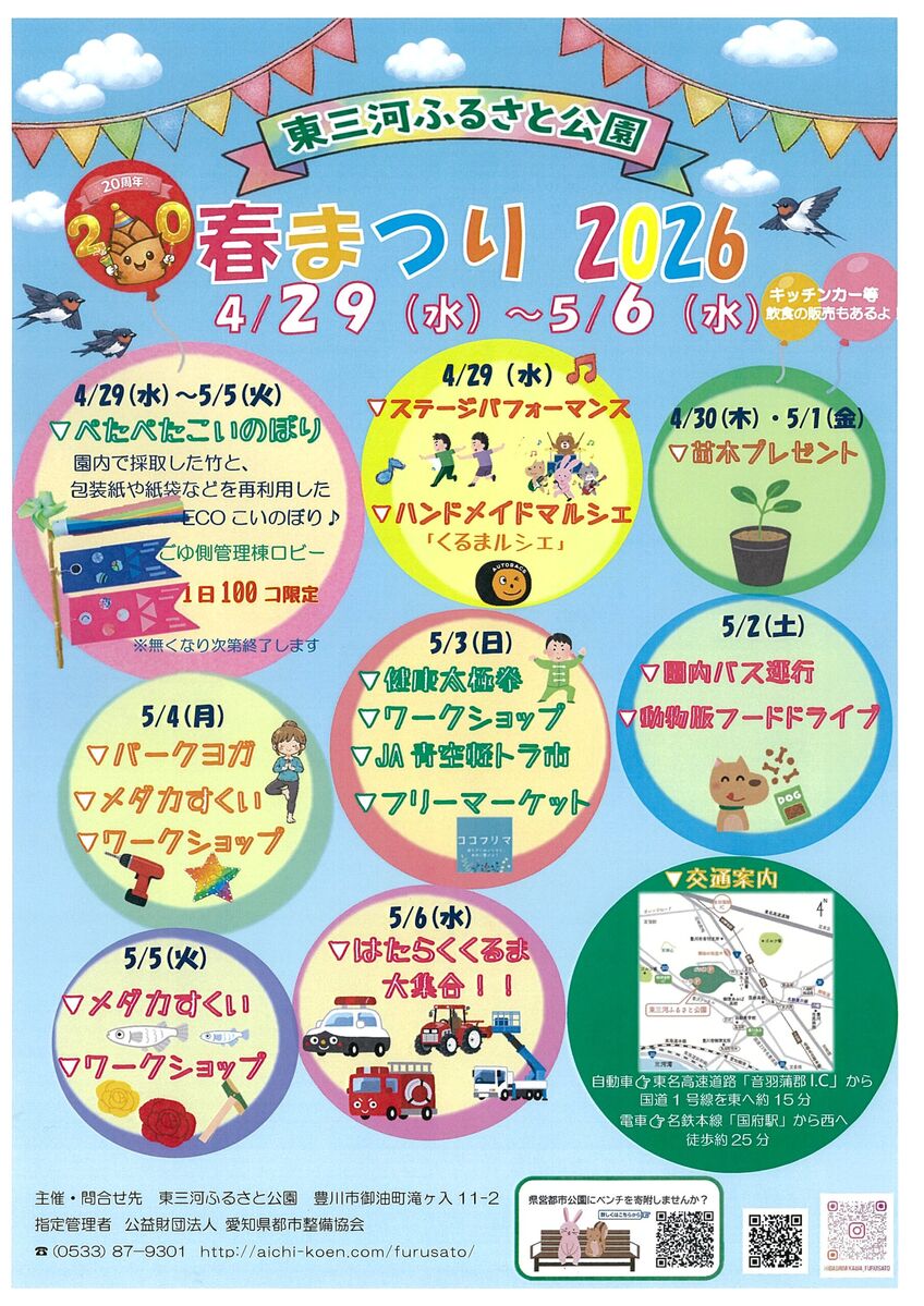 「ふるさと春まつり」(主催:東三河ふるさと公園)が4月29日から5月6日まで開催されます。